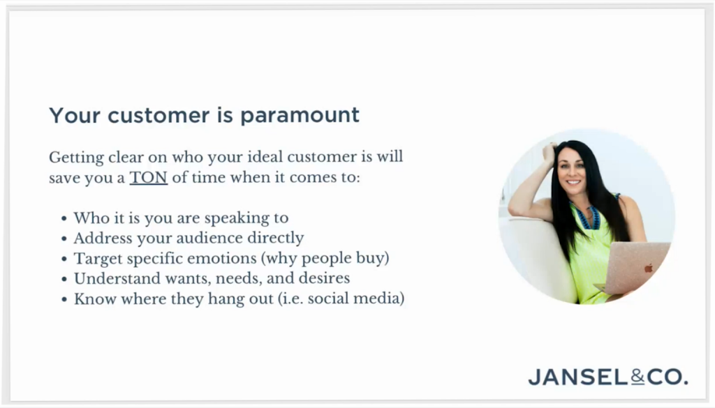 Sarah’s three tips are: understand your ideal customer, create a standout brand and articulate your unique value.